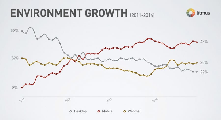 For example, increasingly, users are checking and responding to emails via growing mobile options (seriously, check out the numbers; from 8% to 48% in less than 5 years).